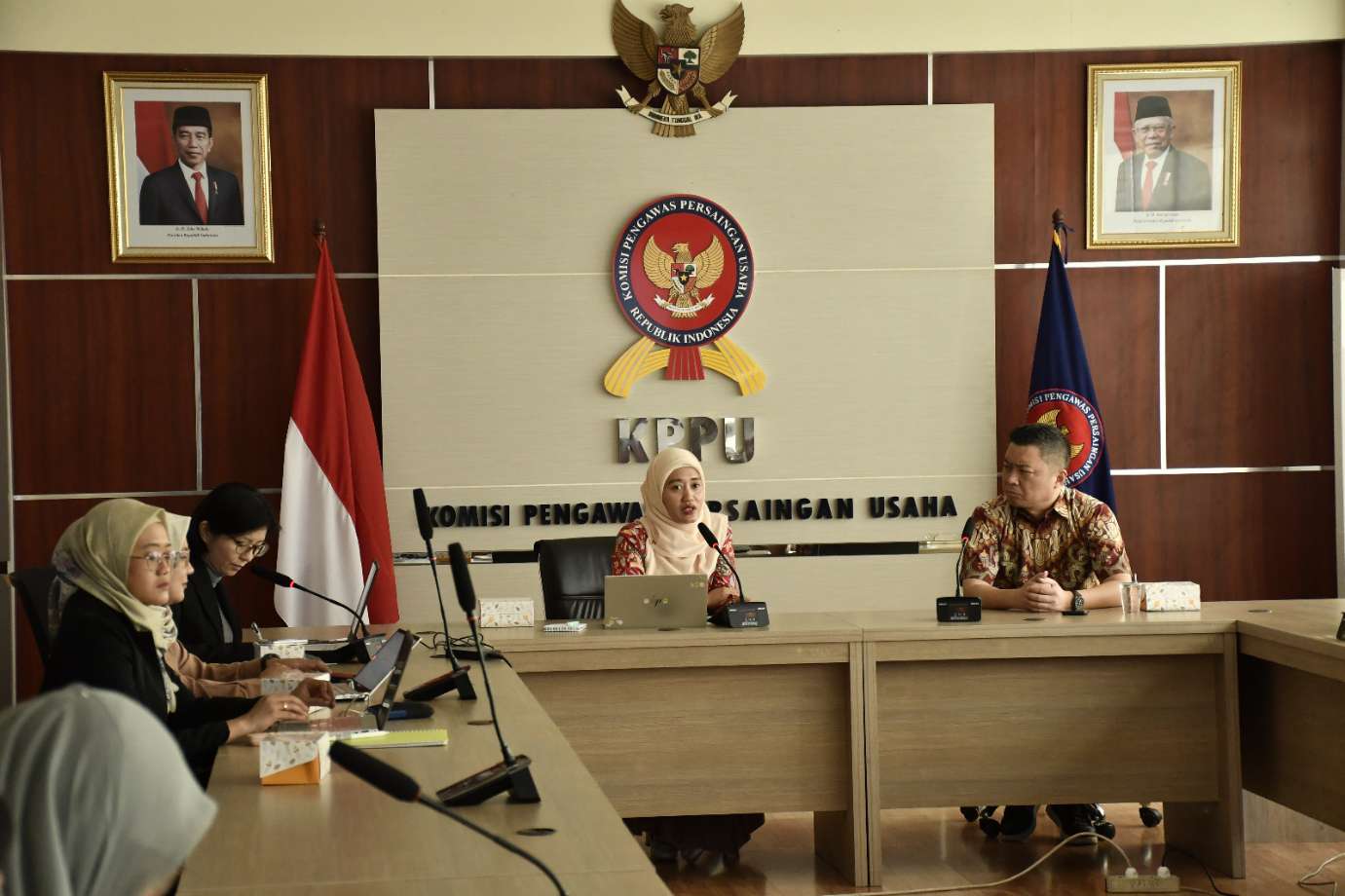 Koordinator satgas kemitraan, Alia Saputri (kiri) dan managing director TianTai Law Firm, Sun Gang (kanan) saat memimpin diskusi di gedung KPPU di Jakarta (10/7).(Ist)