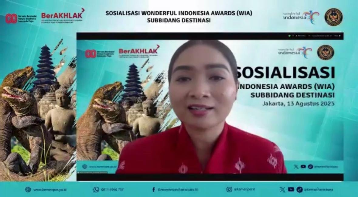 Wakil Menteri Pariwisata (Wamenpar) Ni Luh Puspa dalam sambutannya pada acara “Sosialisasi Kegiatan Wonderful Indonesia Awards” secara daring, Rabu (13/8/2025), menjelaskan bahwa penghargaan ini bukan sekadar seremoni. Melainkan alat ukur yang mendorong inovasi, meningkatkan kualitas layanan, memperkuat kolaborasi, dan mengapresiasi kinerja seluruh pemangku kepentingan pariwisata.