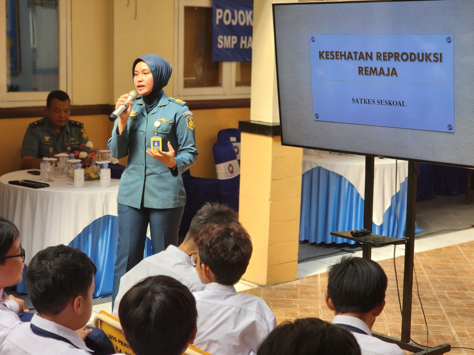 Kepala Sekolah SMP Hang Tuah 2 Jakarta Drs. Aris Supriyanto menyambut baik kegiatan ini dengan ceramah kesehatan tentang Indahnya dunia dengan Gadget disampaikan oleh Mayor Laut (K) drg. Jarot Wicaksono dan Sistem Reproduksi Remaja disampaikan oleh Lettu Laut (K) dr. Nuraeni Yasmin dan di bantu oleh tim Satkes Seskoal bertempat di aula SMP Hangtuah 2.