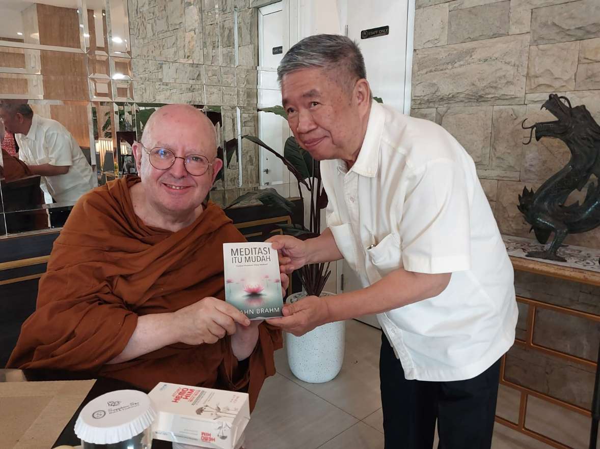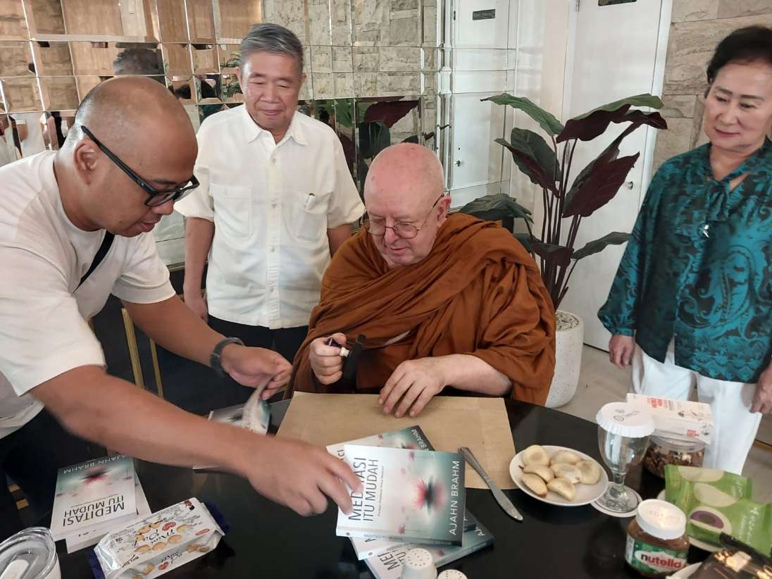 “Karakter masyarakat, umat Buddha Indonesia sangat baik, ramah, peduli. Seperti dana makanan pagi ini (di Yasmin Hotel, Karawaci Tangerang), ada ice cream, biscuit, dan lain sebagainya. Banyak sekali dikasih kepada saya. Kalau perut saya semakin gendut, itu juga karena kebaikan mereka,” kata Ajahn Brahm yang disambut gelak tawa umat dalam kegiatan retreat di Yasmin Hotel Karawaci, Jumat (24/4/2026).