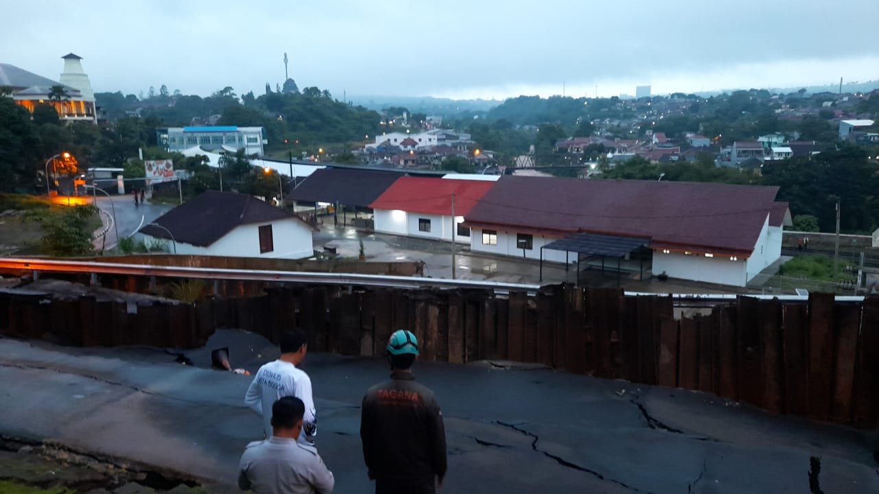 Penampakan jalan utama mengalami retakan/amblas yang cukup signifikan.(Ist)
