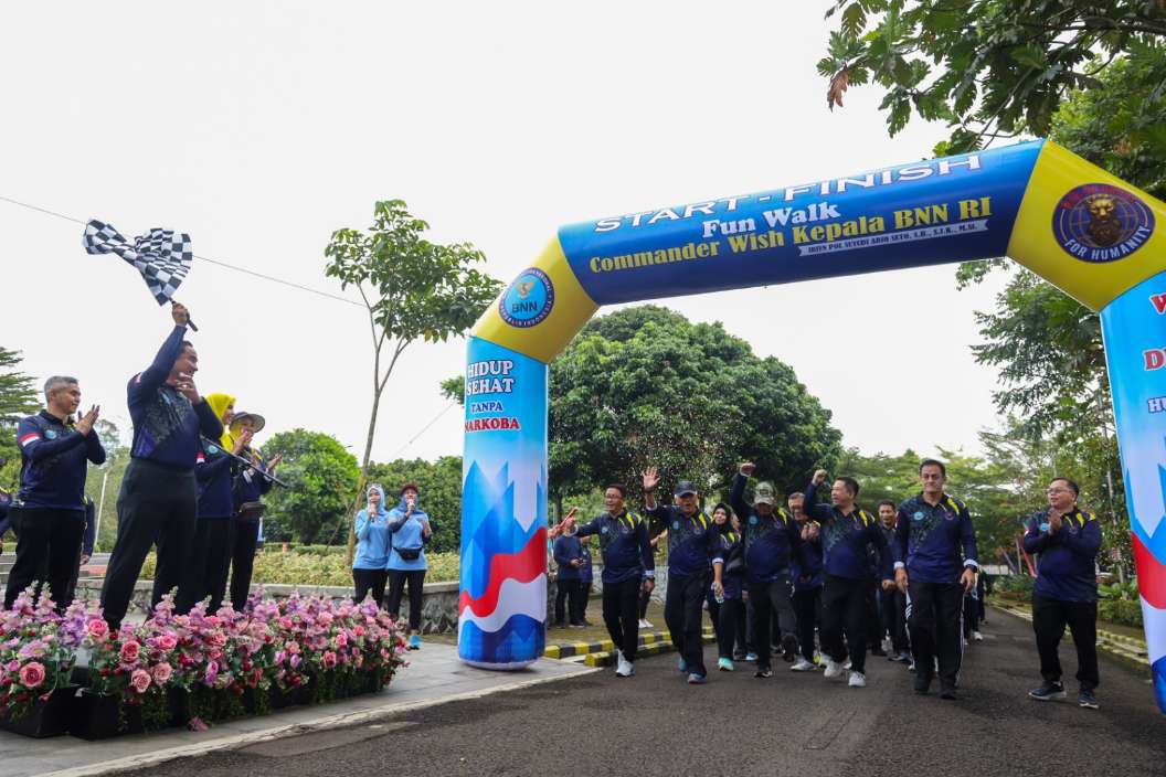 LIDO, NP — Badan Narkotika Nasional Republik Indonesia (BNN RI) menggelar kegiatan jalan santai bertajuk Fun Walk “War on Drugs (WOD) for Humanity” di kawasan Pusat Pengembangan Sumber Daya Manusia (PPSDM) BNN, Lido, Jawa Barat, Kamis (11/9). Kegiatan ini menjadi bagian dari rangkaian acara Commander Wish Kepala BNN RI dan diikuti oleh jajaran pejabat utama dari tingkat pusat hingga daerah.