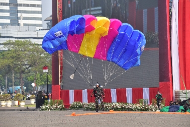 Pasalnya dalam penampilan kegiatan tersebut Prajurit Korps Baret Ungu bersama dengan Prajurit Matra Darat dan Udara melaksanakan kegiatan dengan penuh semangat dan kehati-hatian tanpa ada kesalahan sedikitpun sehingga rangkaian upacara HUT TNI berjalan dengan baik dan aman serta di tonton ribuan masyarakat yang terlihat memadati Silang Monas Jakarta.