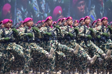 Bukan hanya di depan Presiden RI dan Wakil Presiden RI, Prajurit Petarung Marinir TNI Angkatan Laut yang dikomandani Mayjen TNI (Mar) Nur Alamsyah, S.E., M.M., M.Tr (Han) tampil menyakinkan dan penuh percaya diri dihadapan Panglima TNI Laksamana TNI H. Yudo Margono, S.E., M.M., C.S.F.A., Kapolri Jenderal Polisi Drs. Listyo Sigit Prabowo, M.Si., Kasad Jenderal TNI Dr. H. Dudung Abdurachman, S.E., M.M., Kasal Laksamana TNI Dr. Muhammad Ali, S.E., M.M., M.Tr.Opsla dan Kasau Marsekal TNI Fadjar Prasetyo, S.E., M.P.P., C.S.F.A. serta Pejabat Negara lainnya.