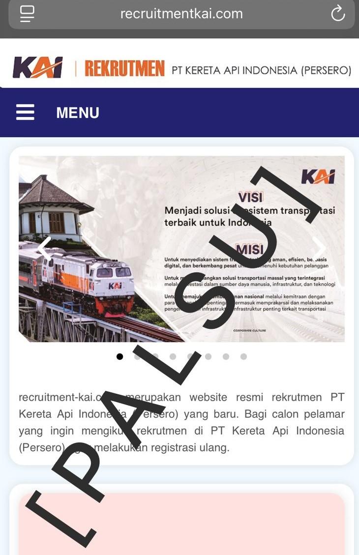 JAKARTA, NP — PT Kereta Api Indonesia (Persero) Daerah Operasi 1 Jakarta mengimbau masyarakat untuk mewaspadai situs dan tautan palsu yang mengatasnamakan KAI dalam proses rekrutmen. Sejumlah situs tidak resmi diketahui mencatut nama perusahaan dan menyebarkan informasi palsu mengenai lowongan kerja, disertai permintaan pembayaran tertentu.