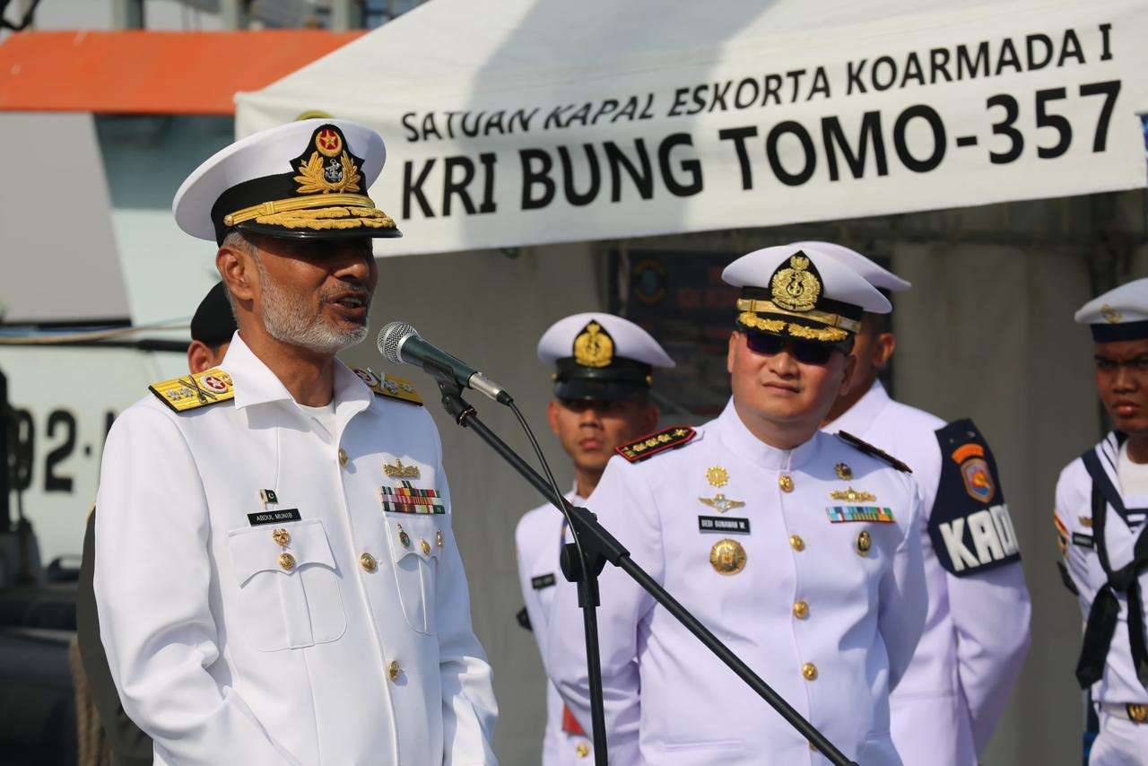 JAKARTA, NP – Latihan Bersama (Latma) Multilateral AMAN-25 resmi dibuka oleh Panglima Armada Angkatan Laut Pakistan/Commander Pakistan Fleet (COMPAK), Rear Admiral (RADM) Abdul Munib di Pangkalan Angkatan Laut Pakistan, Karachi, pada Jumat (8/2). Upacara pembukaan dihadiri turut oleh Komandan KRI Bung Tomo (TOM)-357, Dedi Gunawan Widyatmoko, M.M.Pol., selaku Dansatgas Latma AMAN-25.