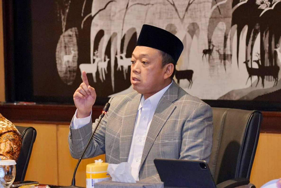 Menteri Agraria dan Tata Ruang/Kepala BPN Nusron Wahid menyampaikan arahan dalam Rapat Koordinasi Alih Fungsi Lahan di Jakarta, Rabu (17/12/2025).(Foto: Ist)