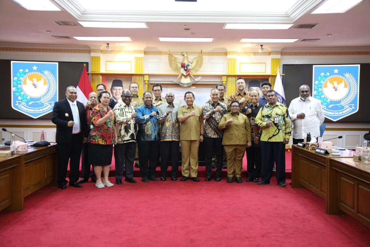 Kebersamaan lintas kementerian dan daerah terekam dalam foto bersama di Kantor Pusat Kemendagri. (Ist)
