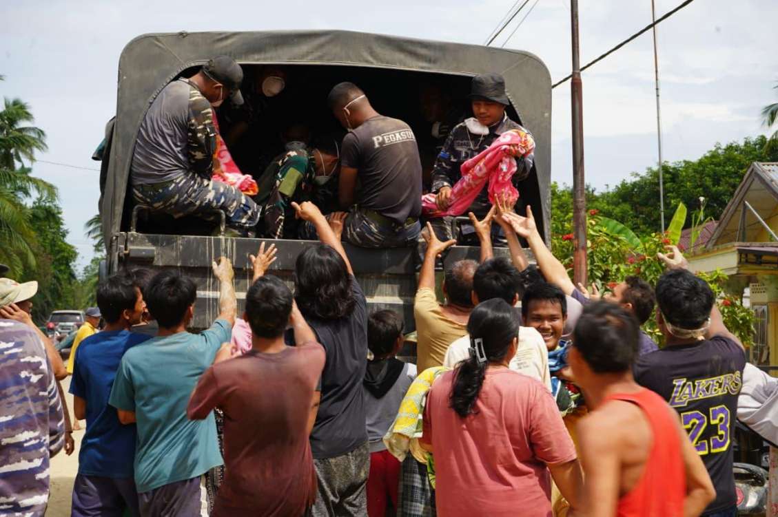 Prajurit TNI AL terjun langsung ke lokasi-lokasi terdampak dengan menyusuri desa-desa yang masih terendam banjir untuk memastikan bantuan diterima secara tepat sasaran. Selain menyalurkan bantuan logistik, prajurit juga membantu proses distribusi serta memberikan dukungan moril kepada warga yang terdampak bencana.