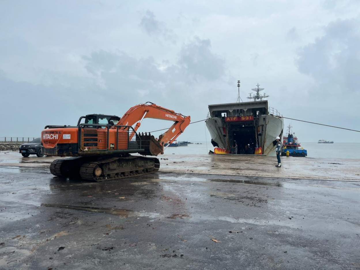 Pengiriman lima unit excavator dilakukan melalui Pelabuhan Menkiong, Muntok, Kabupaten Bangka Barat, sebelum diberangkatkan ke Sumatera Utara menggunakan KRI Teluk Gilimanuk-531 (KRI TGK-531) yang dikomandani Letkol Laut (P) Erwin Dwi Febrianto. Langkah ini merupakan wujud sinergi antara Lanal Bangka Belitung dan PT Timah Tbk dalam mendukung percepatan penanganan dampak bencana.