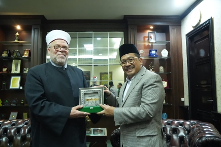 Turut hadir, Duta Besar Palestina untuk Indonesia, Zuhair Al-Shun, Kepala Bagian Kerja Sama Luar Negeri Kemenag, Khoirul Huda Basyir, dan beberapa jurnalis.