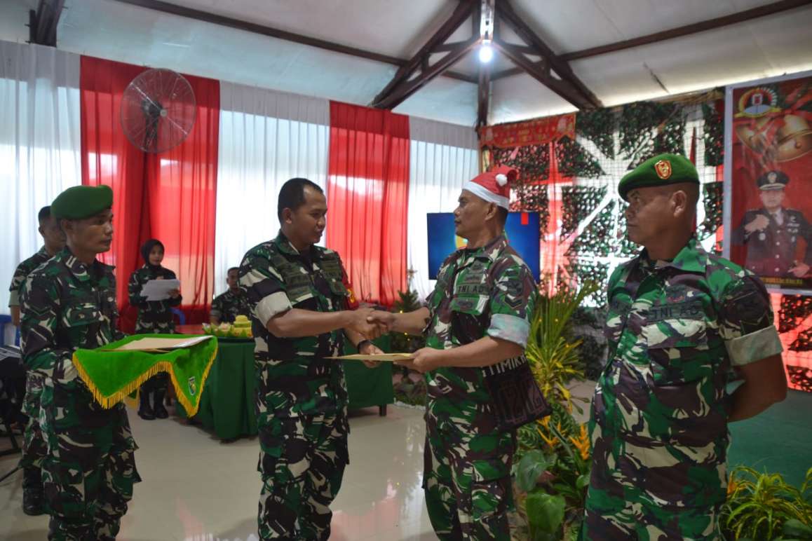 TIMIKA – Bertempat di Pendopo Darmawangsa Kodim 1710/Mimika, Mile 32 Distrik Kuala Kencana, Kodim 1710/Mimika menggelar acara Natal bersama dan peringatan HUT ke-28 Kodim 1710/Mimika. Kegiatan ini dihadiri sekitar 400 orang prajurit dan keluarga guna menciptakan soliditas antar prajurit Kodim 1710/Mimika bersama PNS, Purnawirawan dan Warakawuri dalam suasana Natal tahun 2024, Sabtu (28/12/2024).