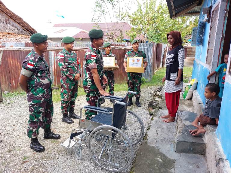 Selain memberikan kursi roda kepada Fadli, Satgas Yonarmed 1 Kostrad juga memberikan bantuan kepada orang tua angkatnya yang dengan tulus dan ikhlas merawat Fadli. “Kita juga memberikan paket sembako untuk sedikit meringankan beban Ibu angkat yang telah dengan ikhlas merawat anak tersebut,” imbuh Dansatgas.