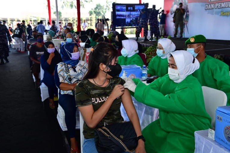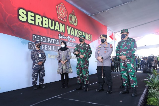 Kegiatan vaksinasi di ujung timur Pulau Jawa yang ditinjau langsung Panglima TNI Marsekal TNI Dr. Hadi Tjahjanto, S.I.P., dan Kapolri Jenderal Polisi Drs. Listyo Sigit Prabowo, M.Si. serta Kepala Staf Angkatan Laut (Kasal) Laksamana TNI Yudo Margono, S.E., M.M., ini melibatkan 573 Tenaga Kesehatan (Nakes) terdiri dari Diskes Koarmada II, BP Lanal Banyuwangi, Nakes Polres Banyuwangi, Nakes Kodim Banyuwangi, Dinkes Kabupaten Banyuwangi, Nakes RSNU serta para Nakes di Puskesmas Banyuwangi tersebar di 45 fasilitas kesehatan umum dalam 25 Kecamatan di Kabupaten Banyuwangi.