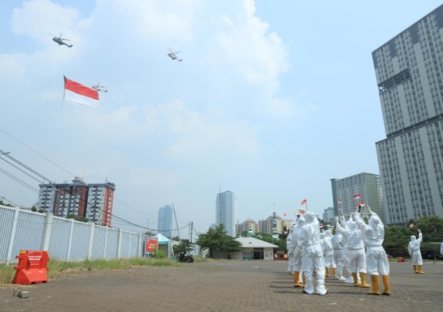 Selain itu, kehadiran Bendera Raksasa berwarna Merah Putih di atas Wisma Atlet ini juga sebagai simbol dalam memberikan motivasi kepada seluruh masyarakat Indonesia yang saat ini masih terpapar Covid-19.