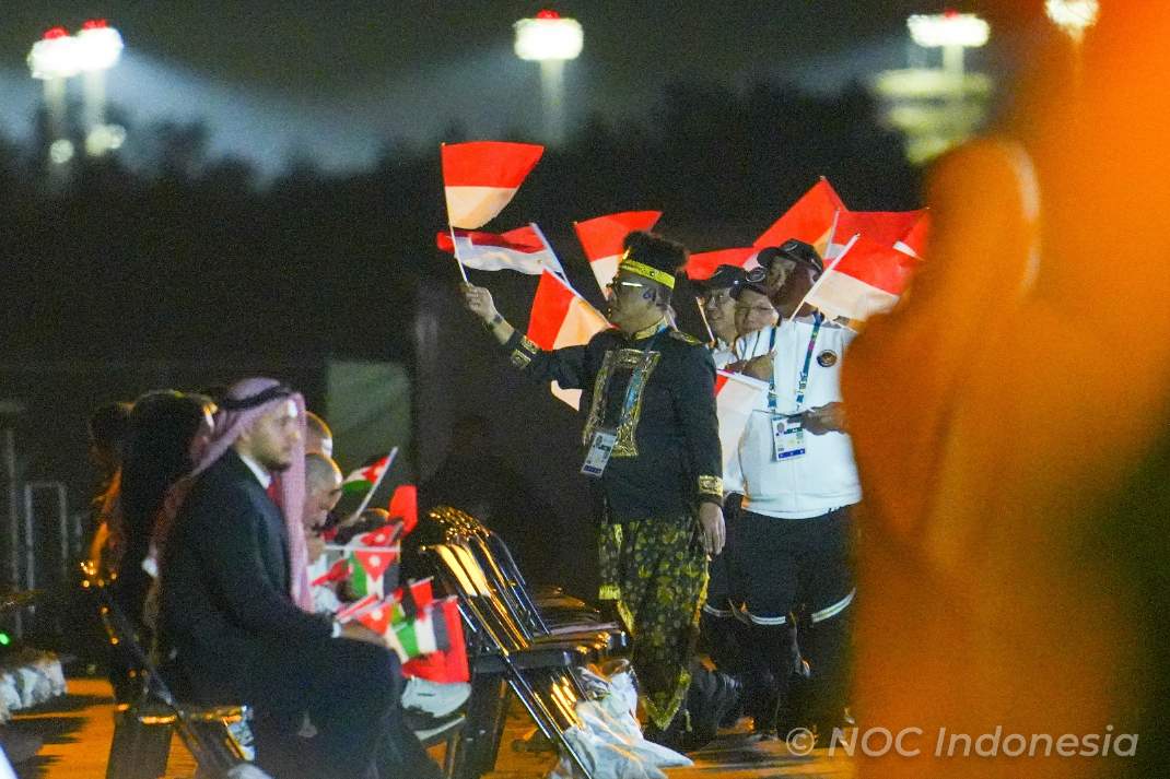 Dipimpin langsung oleh Chef de Mission (CdM) Endri Erawan, tim Indonesia terdiri atas 11 personel yang meliputi atlet, pelatih, ofisial, serta anggota headquarter. Atlet renang Flairene Candrea Wonomiharjo mendapat kehormatan membawa bendera Merah Putih, berdampingan dengan pelatih Albert Christiandi Susanto. Keduanya mengenakan busana adat Dayak yang merepresentasikan semangat juang, keberanian, serta ketangguhan khas putra-putri Nusantara.