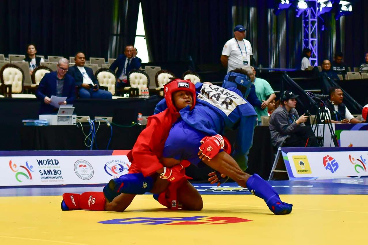 Atlet Sambo Indonesia saat berlaga di hari pertama Kejuaraan Dunia Sambo Remaja dan Junior 2025.(Ist)