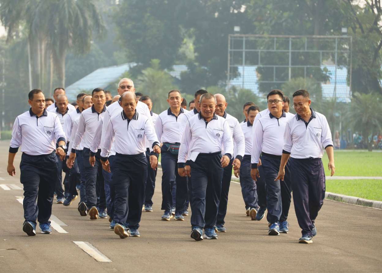 JAKARTA, NP – Komandan Sekolah Staf dan Komando Angkatan Laut (Danseskoal) Laksamana Muda TNI Ariantyo Condrowibowo bersama seluruh prajurit dan Pegawai Negeri Sipil (PNS) di lingkungan Seskoal melaksanakan olahraga di lapangan Laut Jawa Seskoal, Cipulir, Kebayoran Lama, Jakarta Selatan, Selasa (15/7/2025).