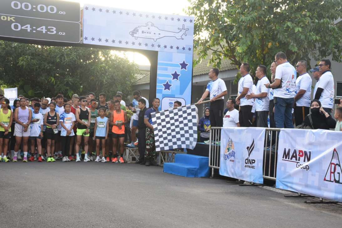 Antusiasme memuncak! Brigjen TNI (Mar) Danuri bersama Danwingdik 700/Hanud resmi melepas peserta 700 Air Defence Run 5K/10K di Surabaya, Minggu pagi. (Foto: Ist)