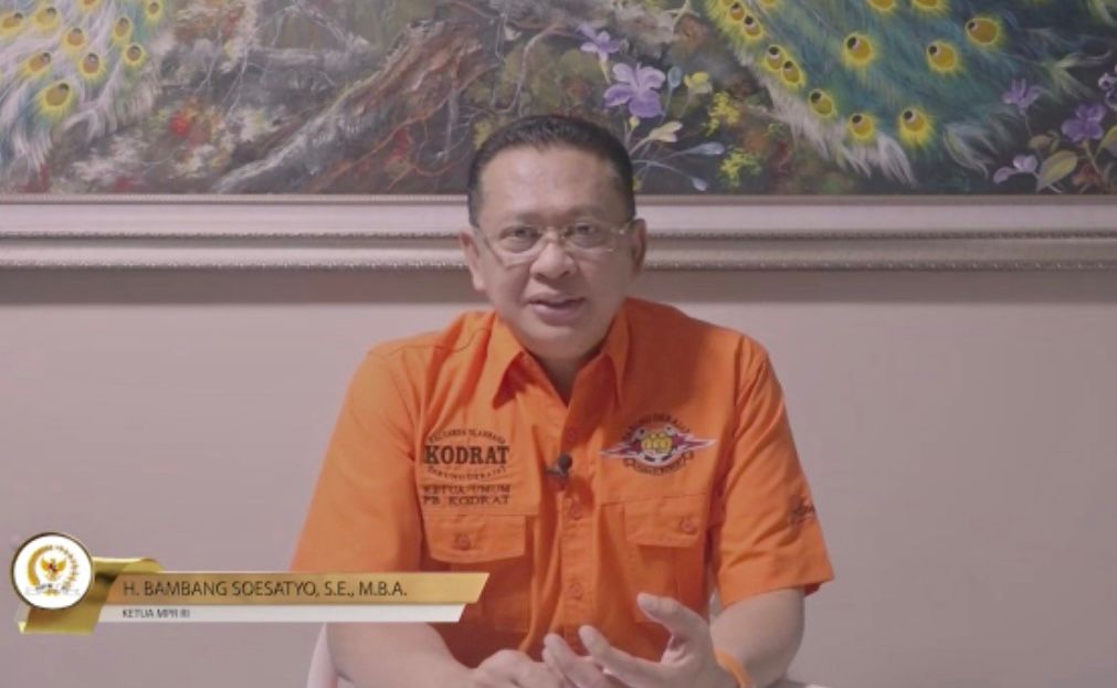 JAKARTA, NP- Ketua MPR RI Bambang Soesatyo didaulat memberikan sambutan secara virtual di acara Pelantikan Dewan Pengurus Pusat Komite Nasional Pemuda Indonesia (DPP KNPI) Pimpinan Haris Pertama masa bakti 2022-2025, dari Jakarta, Sabtu (23/7/2022) malam.