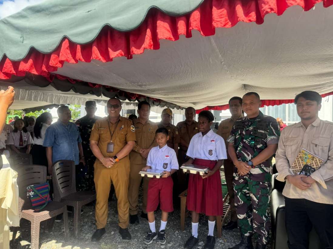 TIMIKA, NP – Komandan Kodim 1710/Mimika, Letkol Inf M. Slamet Wijaya, S.Sos., M.Han., M.A., menghadiri Launching Program Makan Bergizi Gratis yang diselenggarakan di SD Inpres Nawaripi, Jl. Nawaripi, Kec. Inauga, Distrik Wania, Kab. Mimika, Selasa (29/7/2025).