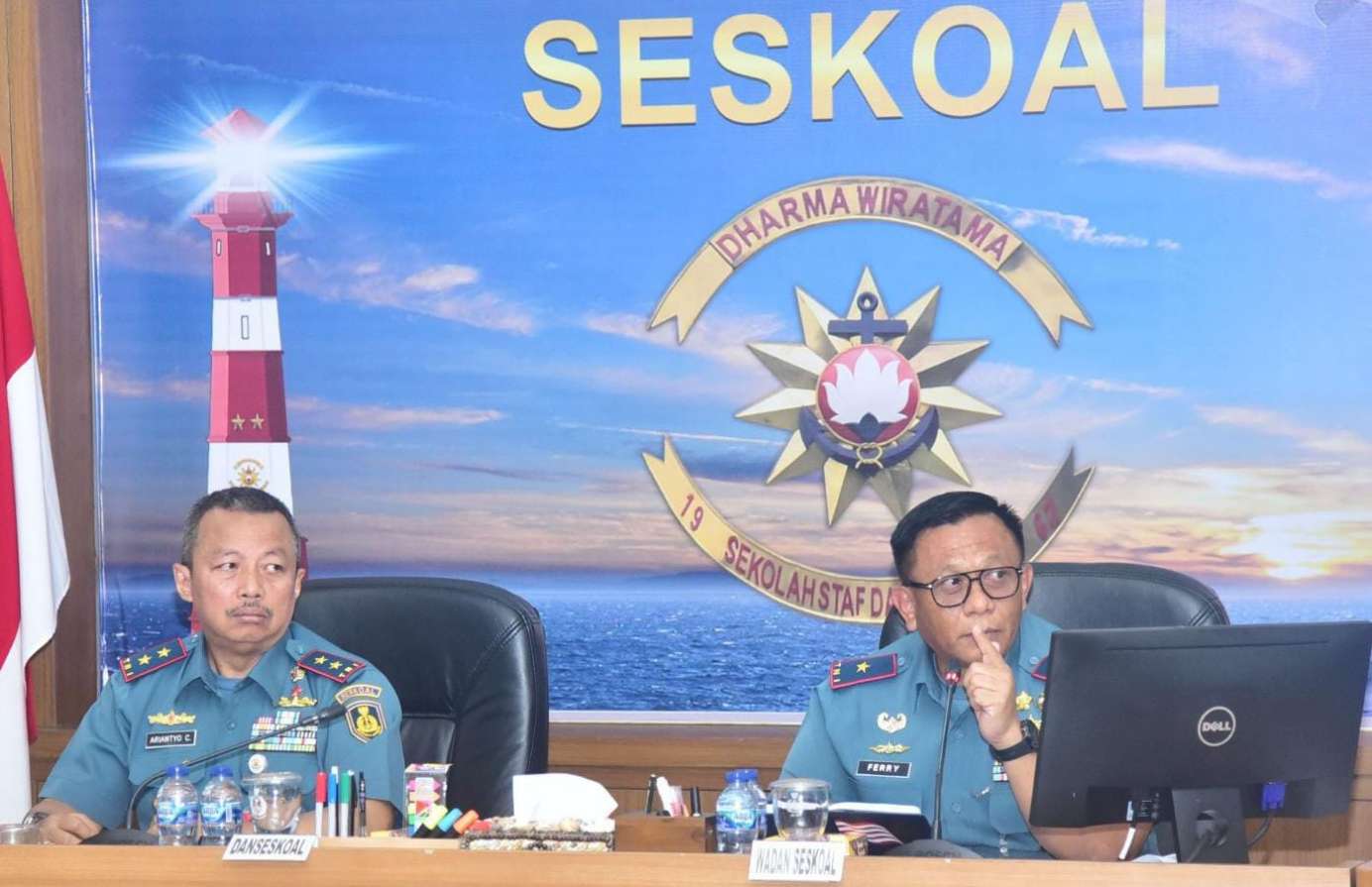 JAKARTA, NP – Komandan Sekolah Staf dan Komando Angkatan Laut (Danseskoal) Laksamana Muda TNI Ariantyo Condrowibowo menerima paparan Kepala Departemen Strategi (Kadepstra) Seskoal Letkol Laut (P) Lucky Wuwung, M.M.P., Sekretaris Lembaga (Seklem) Seskoal Kolonel Laut (E) Dr. Umar Winarno, S.T., M.M., M.Tr.Opsla., CRMP, CIQaR, CTMP, serta Kepala Departemen Kejuangan (Kadepjuang) Seskoal Kolonel Laut (P) Budi Darmawan, S.E., M.Tr.Opsla., di ruang rapat utama Gedung Samadikun, Seskoal, Cipulir, Kebayoran Lama, Jakarta Selatan, Kamis (29/1/2026).
