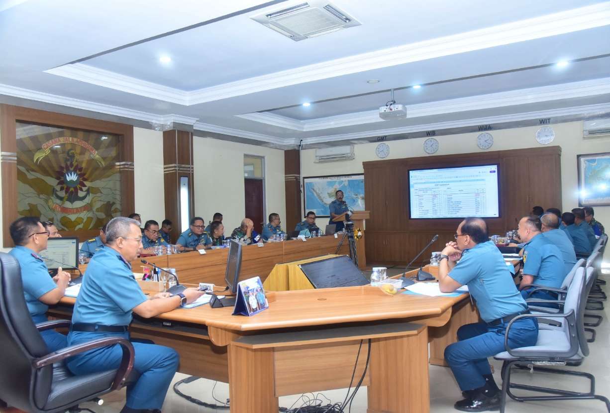 Danseskoal Laksamana Muda TNI Ariantyo Condrowibowo mendengarkan penjelasan terkait Sistem Senjata Armada Terpadu dan pembaruan.(Ist)