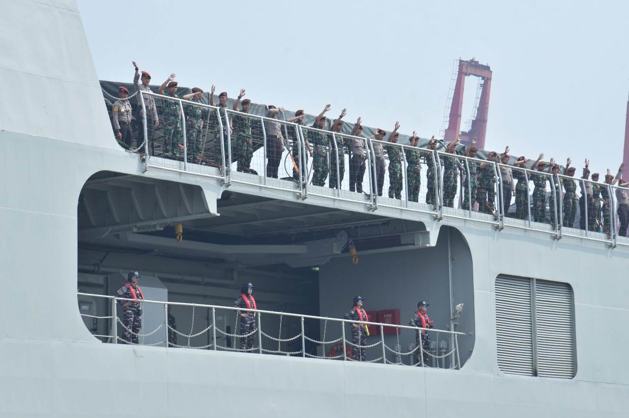 JAKARTA, NP – KRI Banda Aceh-593 (KRI BAC-593) yang merupakan unsur Satlinlamil I Jakarta dibawah jajaran Kolinlamil kembali mendapat kepercayaan sebagai sarana angkutan laut guna mendukung embarkasi pasukan dan material yang akan melaksanakan upacara peringatan HUT Ke-79 Kemerdekaan Republik Indonesia Tahun 2024 di Ibu Kota Nusantara (IKN) yang diberangkatkan pada hari Senin (5/8) dari Dermaga JICT I Tanjung Priok, Jakarta Utara dan direncanakan akan tiba di Pelabuhan Umum Semayang Kota Balikpapan, Kalimantan Timur pada hari Kamis 8 Agustus 2024.