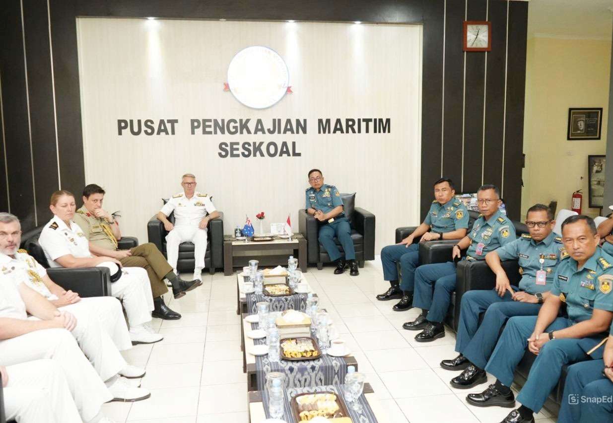 JAKARTA, NP – Komandan Sekolah Staf dan Komando Angkatan Laut (Danseskoal) Laksamana Muda TNI Ariantyo Condrowibowo diwakili Kepala Pusat Pengkajian Maritim (Kapusjianmar) Seskoal Laksamana Pertama TNI Salim, S.E., M.Phil., M.Tr.Opsla., menerima kunjungan kehormatan delegasi Chief of Joint Operation (CJOPS) Australian Defence Force (ADF) yang dipimpin Vice Admiral Justin Jones, AO., CSC., RAN, di gedung Soedomo Pusjiamar Seskoal, Cipulir, Jakarta Selatan, Kamis (05/02/2026).