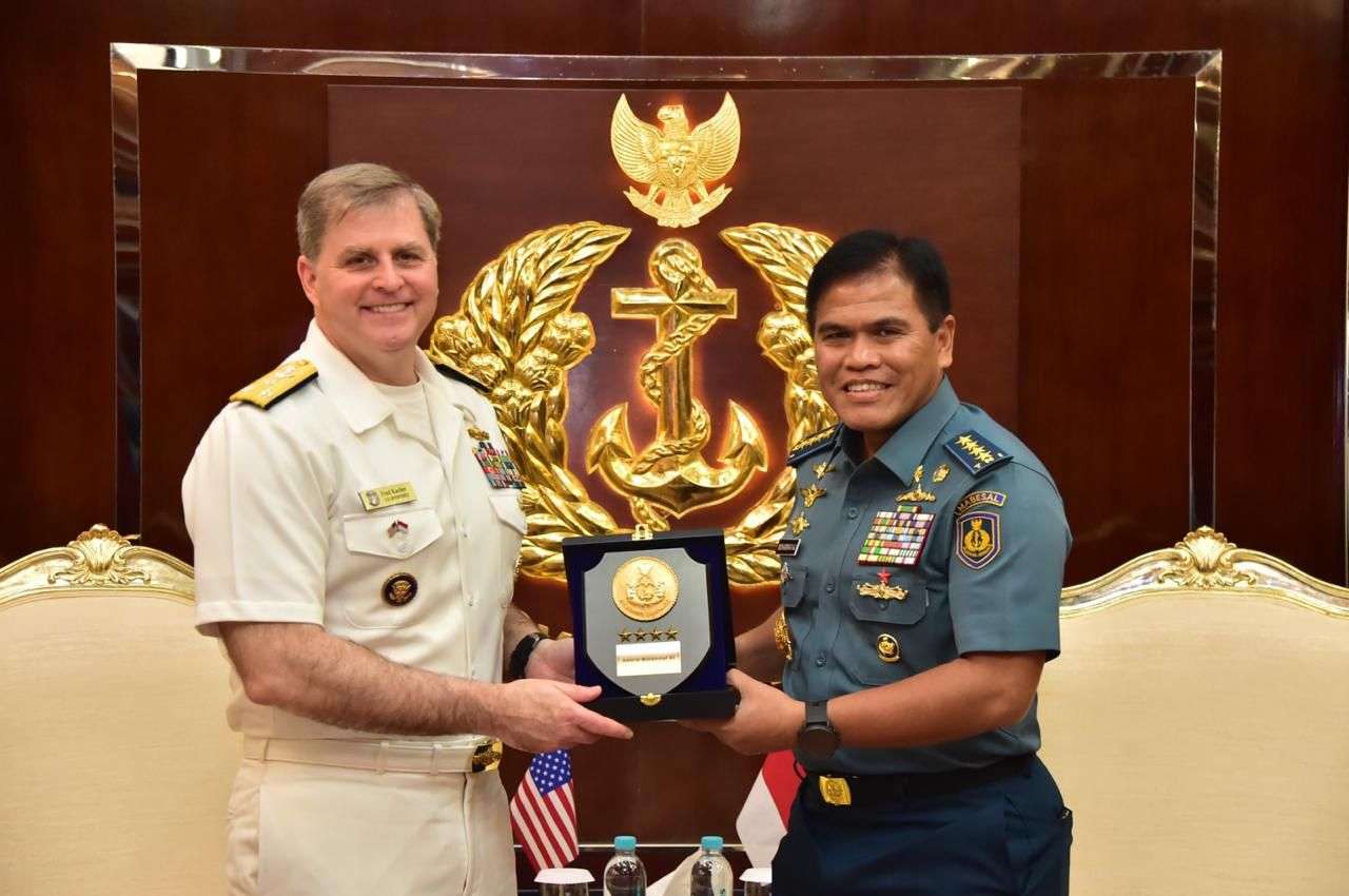 JAKARTA, NP – Kepala Staf Angkatan Laut (Kasal) Laksamana TNI Dr. Muhammad Ali didampingi Wakasal Laksamana Madya TNI Erwin S. Aldedharma menerima courtesy call Panglima Armada Ketujuh, Angkatan Laut Amerika Serikat, Vice Admiral Fred Kacher bertempat di Admiral Room, Gedung Utama Mabesal, Cilangkap, Jakarta Timur. Rabu (31/07).