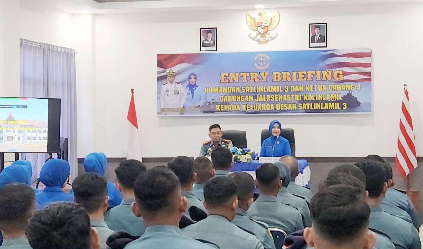 JAKARTA, NP – Awali penugasan sebagai Komandan Satlinlamil 3, Kolonel Laut (P) Sulthon Maula Firdaus, M.Tr.Opsla., didampingi Ketua Cabang 4 Gabungan Jalasenastri Kolinlamil Ny. Alin Sulthon melaksanakan Entry Briefing kepada Keluarga Besar Satlinlamil 3, bertempat di Ruang Rapat Mako Satlinlamil 3, Jalan Teuku Umar, Kota Makassar, Selasa (12/8).