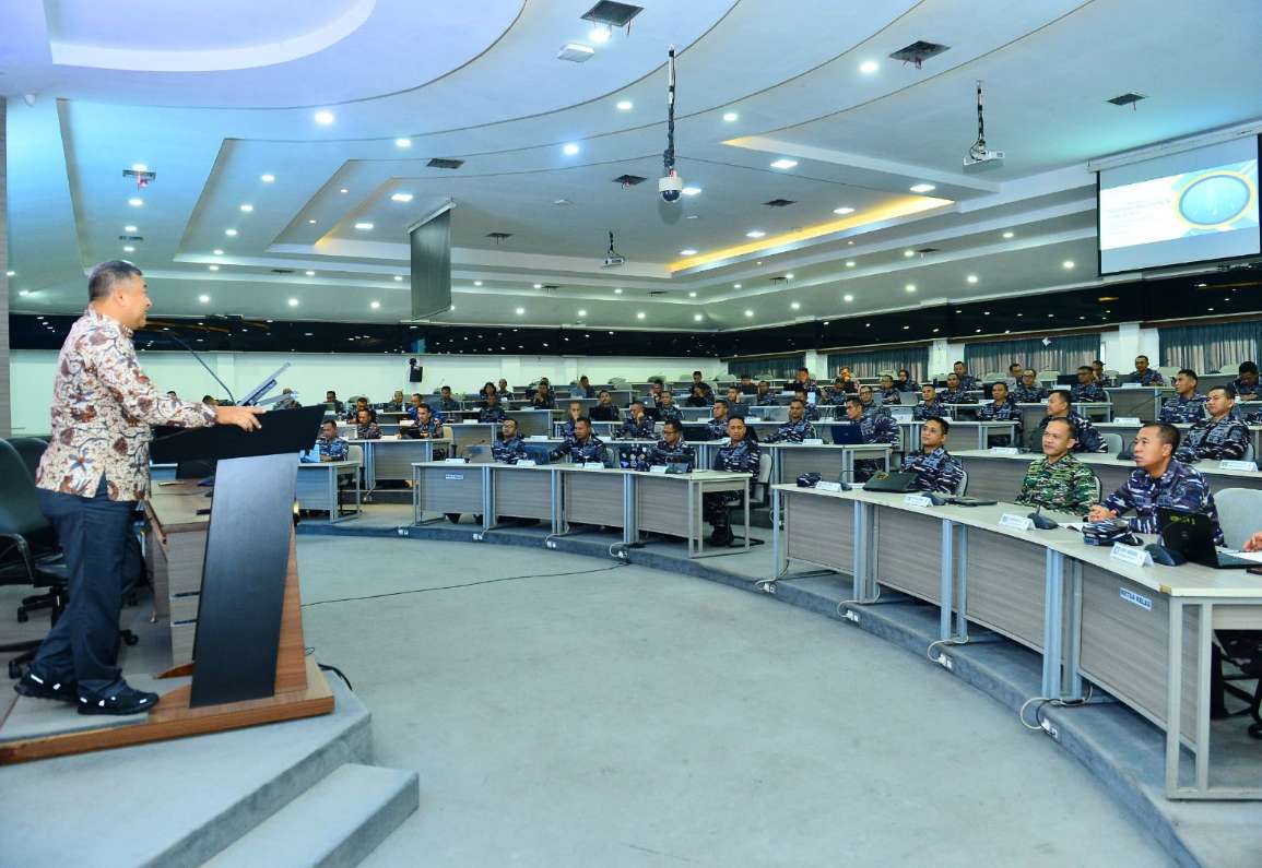 Para perwira siswa menyimak dengan saksama kuliah umum yang disampaikan Laksda TNI (Purn) Kresno Buntoro, membahas tantangan netralitas Indonesia dalam dinamika geopolitik global.(Ist)