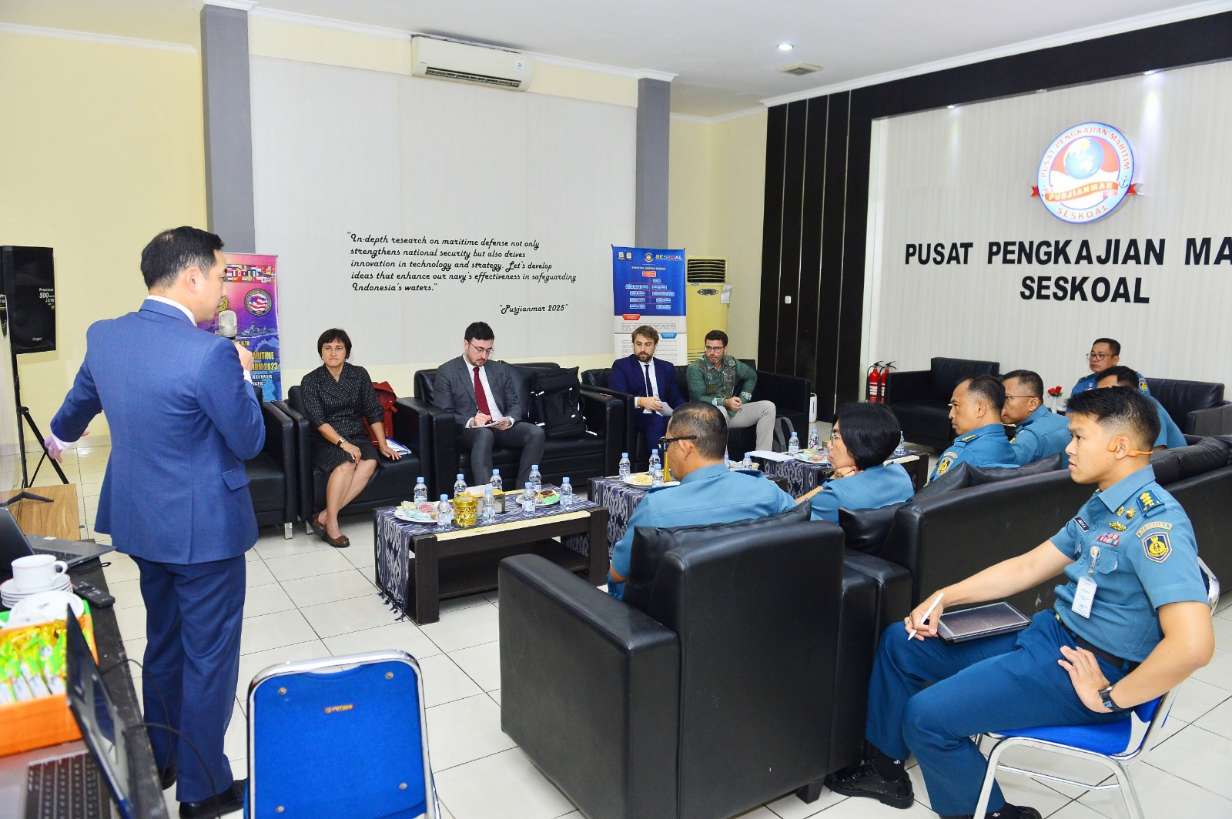 JAKARTA, NP – Komandan Sekolah Staf dan Komando Angkatan Laut (Danseskoal) Laksamana Muda TNI Ariantyo Condrowibowo yang diwakili Kepala Pusat Pengkajian Maritim (Kapusjianmar) Seskoal Laksamana Pertama TNI Salim, S.E., M.Phil., M.Tr.Opsla., menerima kunjungan Pakar Maritime Domain Awareness (MDA) Royal Navy, Lieutenant Commander Nelson McMilan beserta staf, di Gedung Pusjianmar Seskoal, Cipulir, Kebayoran Lama, Jakarta Selatan, Selasa (27/1/2026).