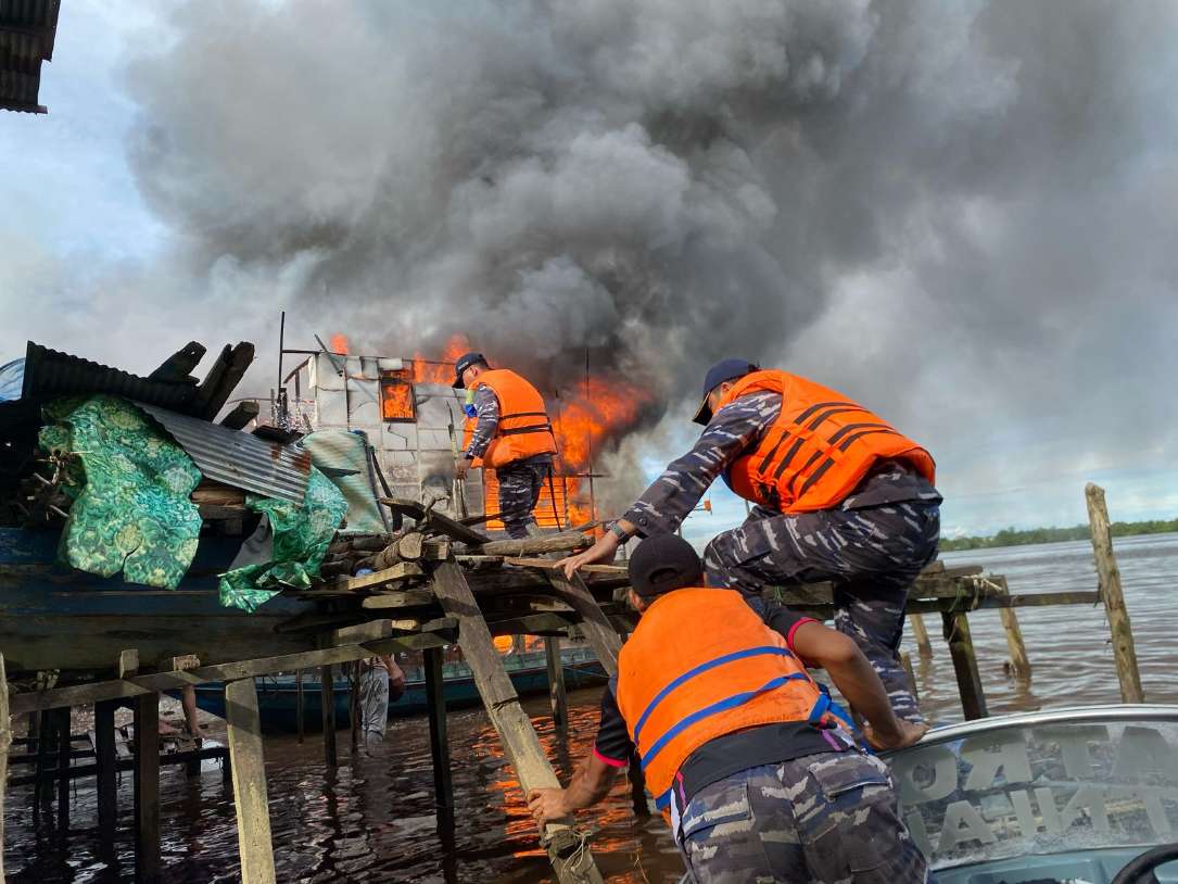 JAKARTA, NP – TNI AL melalui Pos TNI AL (Posal) Bahaur dibawah jajaran Lanal Banjarmasin gerak cepat membantu proses pemadaman kebakaran yang terjadi di pemukiman warga Desa Bahaur Tengah, Perairan Sungai Kahayan, Kecamatan Kahayan Kuala, Kabupaten Pulang Pisau, Kalimantan Tengah. Jumat (18/4)