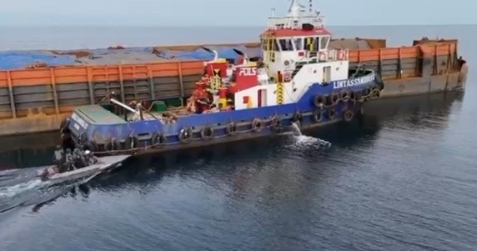TNI AL periksa TB. Nusantara 3303 – TK. Graham 3303. Kapal berawak 10 ABK WNI ini membawa nikel dari PT DMS ke PT IMIP Morowali,…