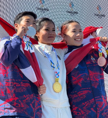 Atlet Indonesia, Ayustina Delia Priatna, menunjukkan kegembiraan setelah meraih medali emas pada nomor ITT Putri SEA Games Thailand 2025. (Foto: Ist) BANGKOK, NP – Atlet…