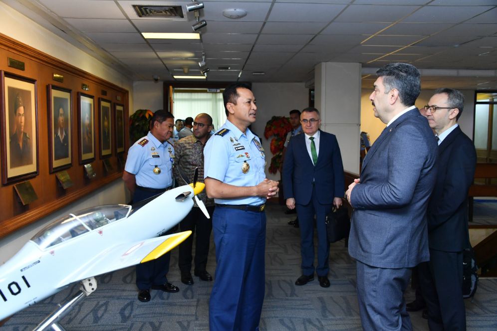 Kasau Marsekal TNI M. Tonny Harjono menerima CEO Havelsan Mehmet Akif Nacar, membahas peluang kerja sama modernisasi pertahanan udara nasional, di Mabesau, Cilangkap, Senin (12/1/2026).…