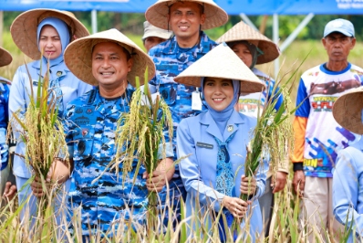 TASIKMALAYA NP – Kepala Staf Angkatan Udara (Kasau) Marsekal TNI M. Tonny Harjono, S.E., M.M., memanen padi di Dirgantara Farm Lanud Wiriadinata, Tasikmalaya, Rabu (19/3/2025).…