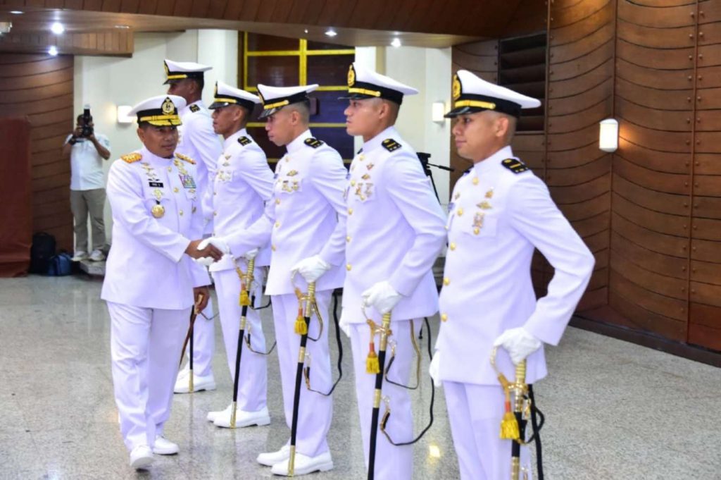 Pangkormar Letjen TNI (Mar) Dr. Endi Supardi menyalami perwira usai Upacara Prasetya Perwira Diktukpa Khusus TNI AL TA 2026 di Mabesal, Cilangkap, Jakarta Timur, Kamis…