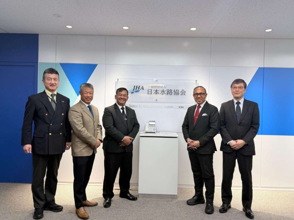 Danpushidrosal Laksamana Madya TNI Dr. Budi Purwanto, S.T., M.M. (ketiga dari kiri), bersama delegasi Indonesia, Malaysia, Jepang, dan Singapura usai MSS-ENC Steering Committee Meeting ke-17…