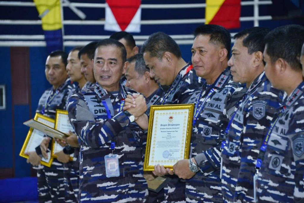 Panglima Komando Armada Republik Indonesia menyerahkan penghargaan kepada prajurit berprestasi sebagai bentuk apresiasi atas dedikasi, loyalitas, dan kinerja unggul dalam mendukung tugas pertahanan negara di…