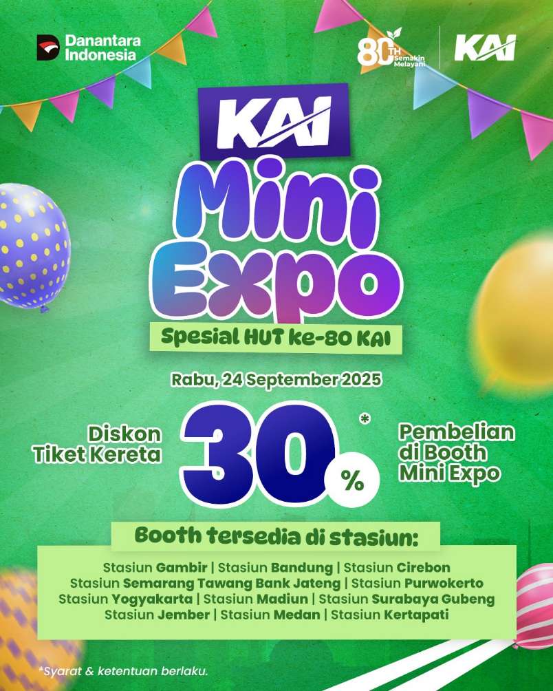 JAKARTA, NP – Dalam rangka memperingati Hari Ulang Tahun ke-80, PT Kereta Api Indonesia (Persero) menghadirkan program spesial bertajuk KAI Mini Expo yang akan digelar serentak…