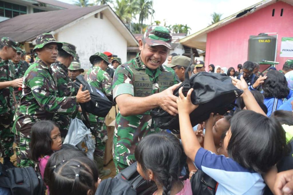 Kepala Staf Angkatan Darat Jenderal TNI Maruli Simanjuntak menyerahkan bantuan perlengkapan sekolah kepada siswa terdampak bencana di Desa Hutanabolon, Tapanuli Tengah, Jumat (9/1/2026). (Foto: Ist)…