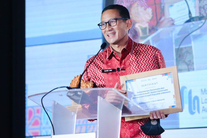 Menparekraf Sandiaga Salahuddin Uno. (Foto:Ist) JAKARTA, NP – Kementerian Pariwisata dan Ekonomi Kreatif/Badan Pariwisata dan Ekonomi Kreatif (Kemenparekraf/Baparekraf) meraih penghargaan sebagai salah satu “Kolaborator Tribun…