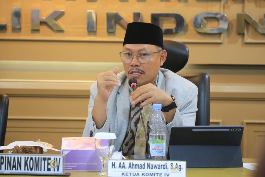 Ketua Komite IV DPD RI Ahmad Nawardi saat memimpin Rapat Dengar Pendapat (RDP) dengan Badan Gizi Nasional (BGN) di Gedung DPD RI, Komplek Parlemen, Senayan,…