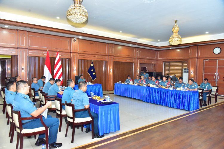Suasana rapat penyusunan Rencana Pelibatan (Renlibat) Kolinlamil dalam mendukung penanganan Kontinjensi TNI Tahun 2027 yang dipimpin Pangkolinlamil Laksamana Muda TNI Rudhi Aviantara di Mako Kolinlamil,…