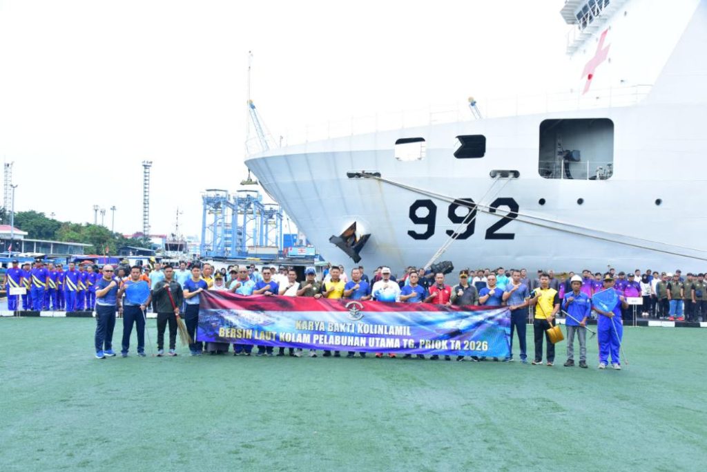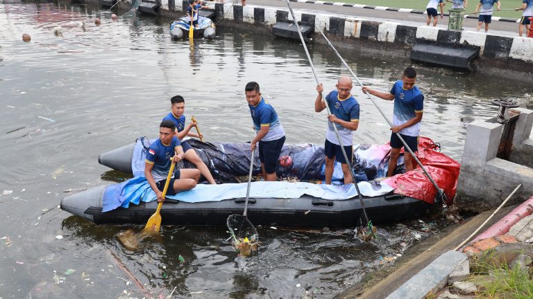 Prajurit Komando Lintas Laut Militer bersama instansi maritim bergotong royong membersihkan kawasan Pelabuhan Tanjung Priok sebagai wujud kepedulian terhadap lingkungan laut. (Foto: Ist) JAKARTA, NP…