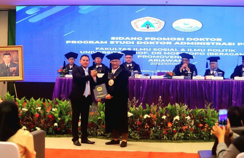 Ketua Koordinatoriat Wartawan Parlemen (KWP) Ariawan usai menjalani sidang terbuka gelar Doktor Administrasi Publik di Universitas Prof Dr Moestopo Beragama atau UPDM(B), Jakarta, Sabtu (18/10/2025).…