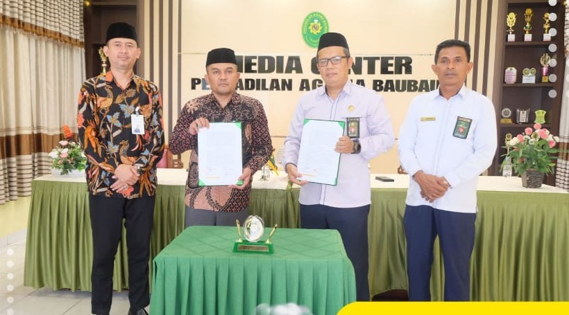 Lembar perjanjian kerja sama resmi ditunjukkan usai penandatanganan MoU PA Baubau–BSI. (Foto: Ist) BAUBAU, NP – Pengadilan Agama Baubau menandatangani Perjanjian Kerja Sama (MoU) dengan…