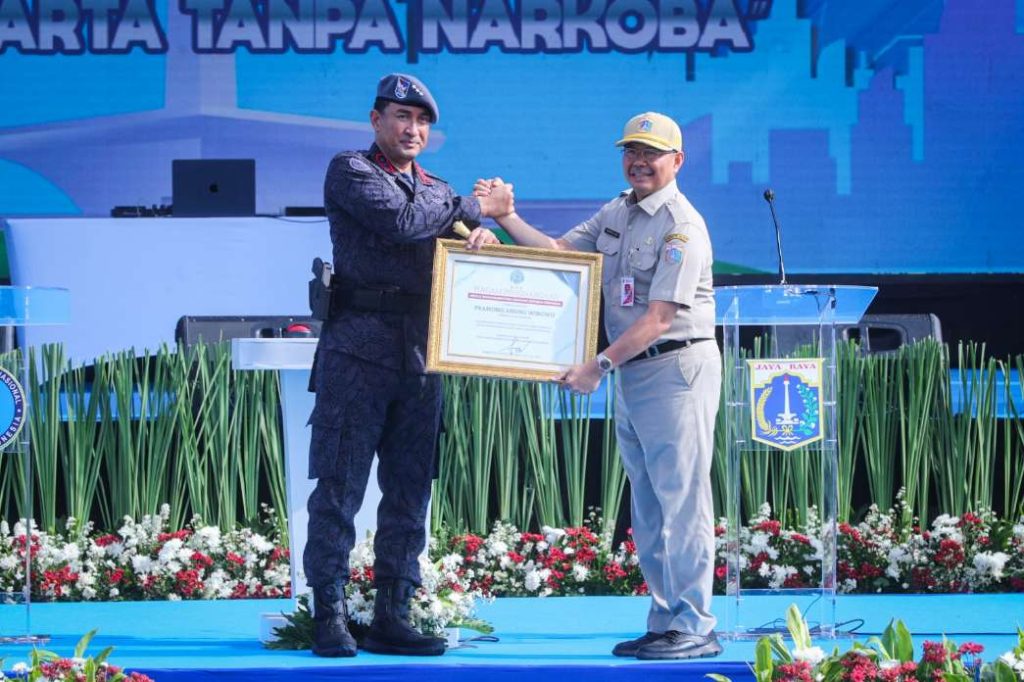 Kepala BNN RI menyerahkan piagam penghargaan kepada Gubernur DKI Jakarta atas dukungan penuh terhadap gerakan “Jaga Jakarta Tanpa Narkoba”. Bersama, wujudkan ibu kota Bersinar —…